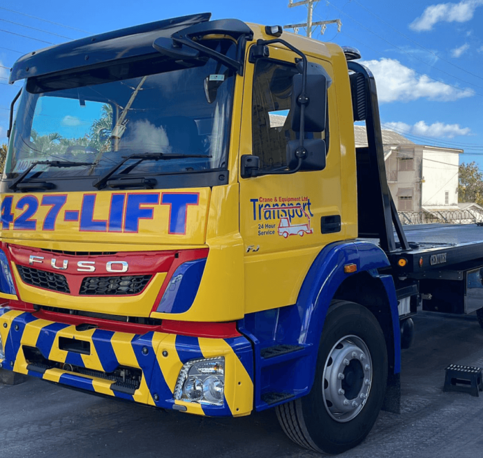 The primary use for the FUSO flatbed truck is for moving large commercial equipment which can driven on and off with ease. When it comes to transporting, it is the first choice based on its adaptability. The flatbed body can be transformed into a versatile vehicle with add-ons such as guard rails, which allows it to carry bigger loads. Its hydraulic bed tilts and slides backward, allowing the entire bed to touch the ground . -