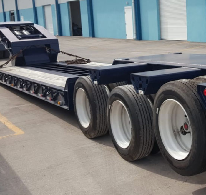 A lowboy is a semi-trailer with two drops in deck height: one right after the gooseneck and one right before the wheels. This allows the deck to be extremely low compared with other trailers. It offers the ability to carry legal loads up to 12 ft tall, which other trailers cannot.