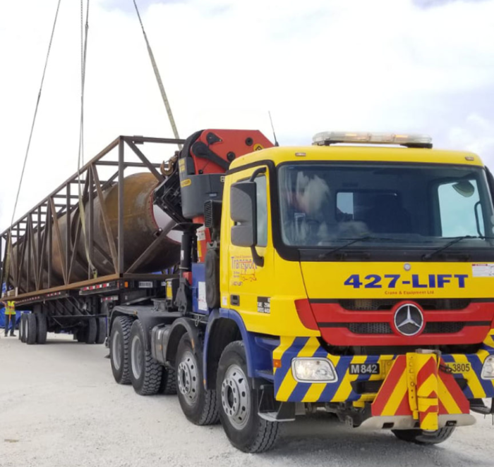 <strong>27 Metric ton Or 30 US ton Knuckle Boom Crane</strong> 30 US Ton knuckle boom crane mounted on Tractor Unit. This machine has 51’ main boom and 48’ 7” of hydraulic luffing jib. This machine also has the ability to transport cargo in multiple configurations. It can use various trails for large long loads, or can be fitted with a tray for items up to 12’ in length and 8’ in height and width, for items going in confined areas.